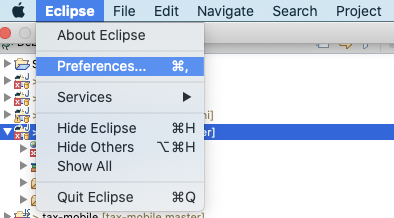 1. 새로 설치한 JDK 를 이클립스에 등록한다. [Eclipse] > [Preferences]