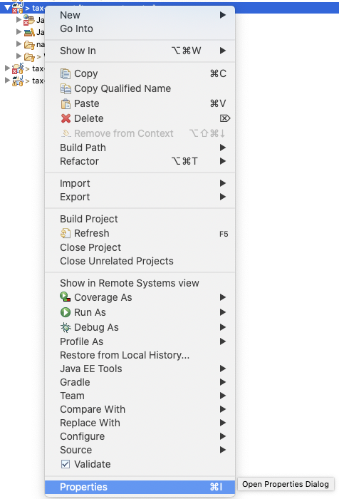 2. 프로젝트의 자바버전 변경 - 변경하고자 하는 프로젝트를 오른쪽 마우스 클릭하여 [Properties] 클릭